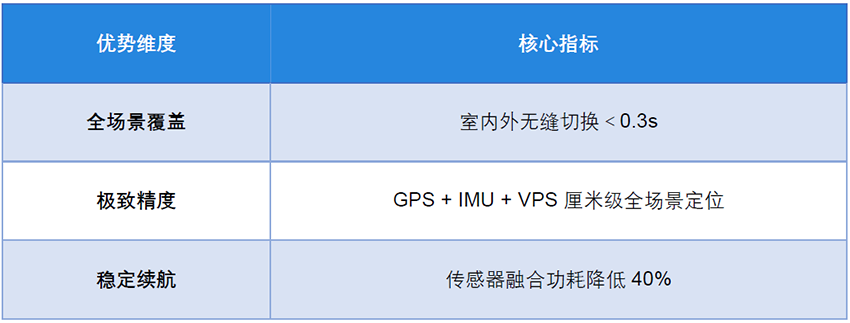 技術(shù)核心價(jià)值在于實(shí)現(xiàn)“全場(chǎng)景無縫銜接+厘米級(jí)精準(zhǔn)定位+低耗穩(wěn)定運(yùn)行”的三維突破,可直接適配智能手機(jī)、AR眼鏡等移動(dòng)終端,為用戶提供“虛實(shí)融合”的空間定位體驗(yàn)。