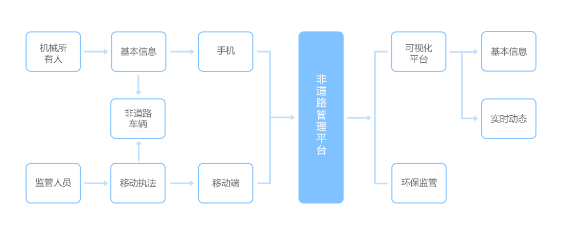非道路移動機械數(shù)量占機動車保有量比例不高,但是其排放污染貢獻率卻一直居高不下,隨著藍天保衛(wèi)戰(zhàn)的深入推進,我國非道路移動機械的排放標(biāo)準(zhǔn)和管理也越來越嚴格。該解決方案可以管理非道路機械的基本信息,監(jiān)管其使用區(qū)域,掌握機械使用的動態(tài)信息,并為機械使用者提供使用申報和檢測預(yù)約等服務(wù),配合生態(tài)環(huán)境部門做好機械環(huán)保標(biāo)識管理,同時可為城市大氣污染源構(gòu)成和空氣質(zhì)量變化分析提供基礎(chǔ)數(shù)據(jù)支撐。