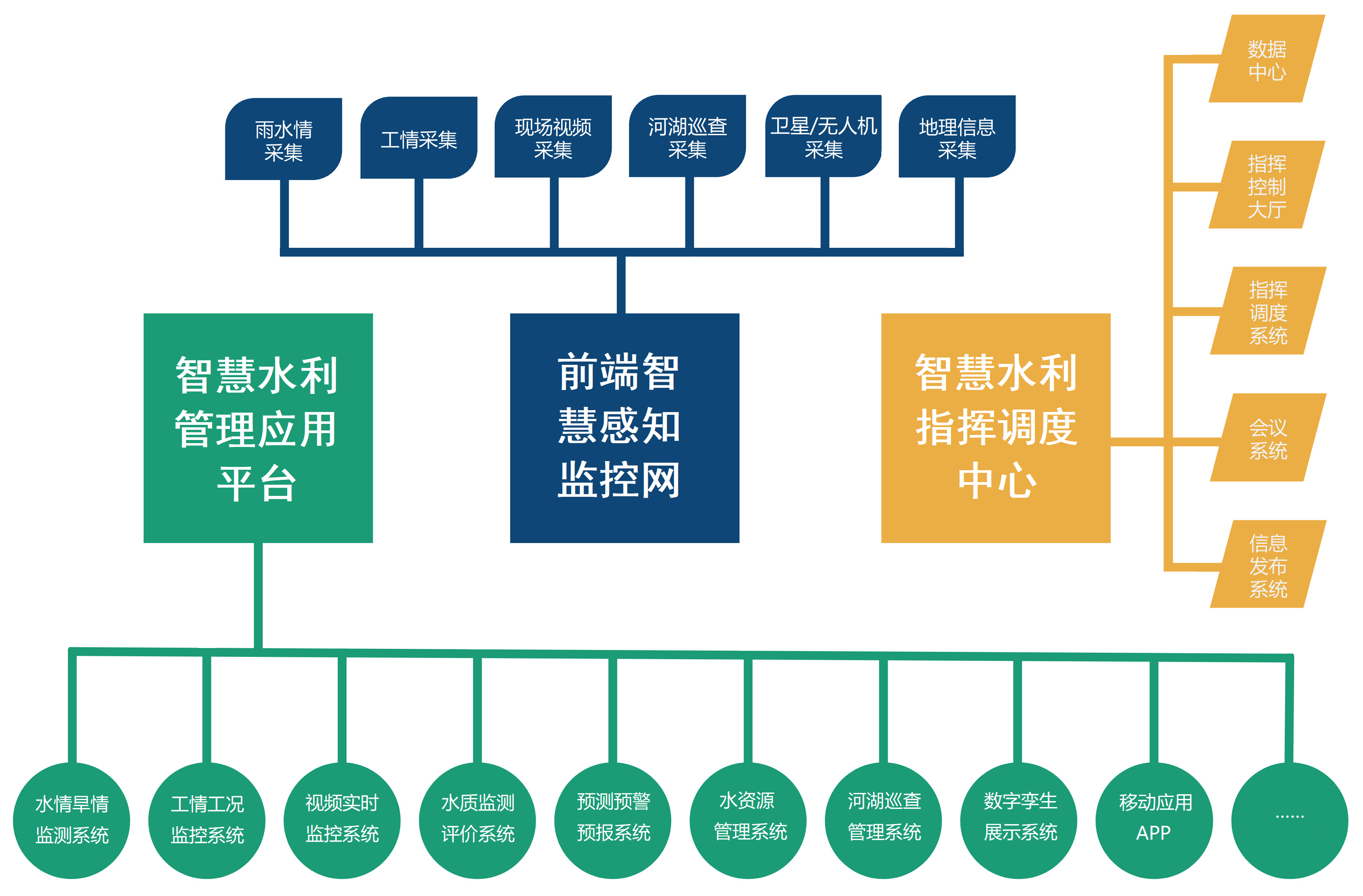 一中心:建立支撐新一代水利業(yè)務(wù)應(yīng)用的指揮調(diào)度中心,包括大數(shù)據(jù)中心、指揮控制大廳、指揮調(diào)度系統(tǒng)、會議系統(tǒng)和信息發(fā)布系統(tǒng)。
